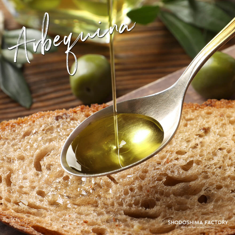 小豆島産手摘み100%のアルベキーナ種オイルの「香味」を存分に味わっていただくべく、